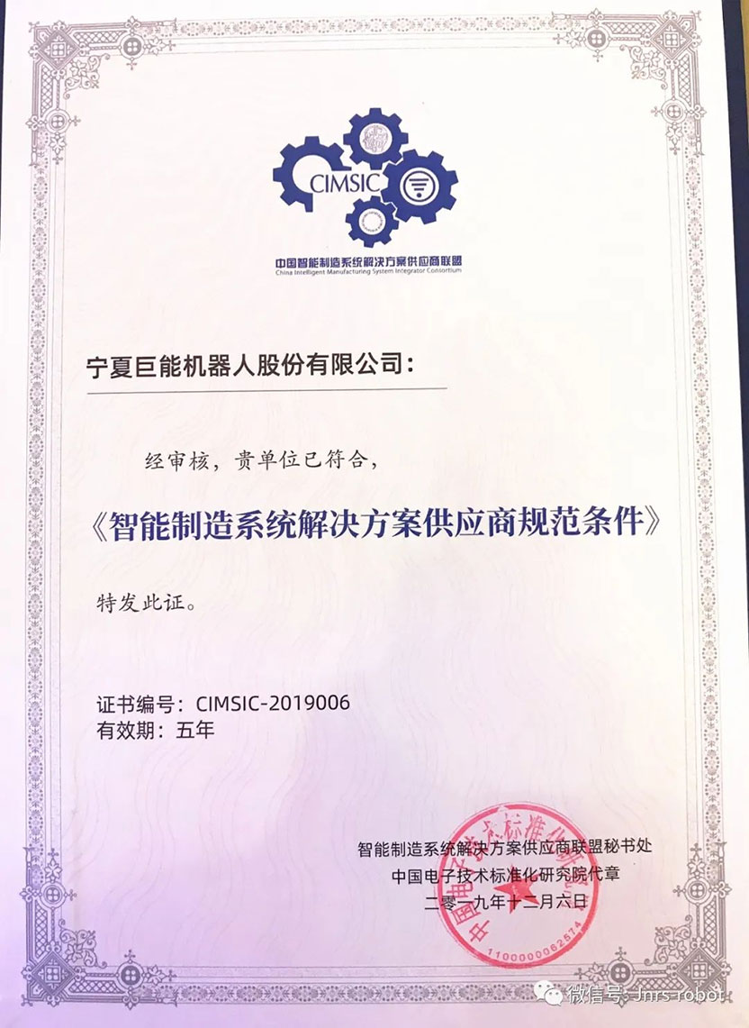 全國32家符合《工業(yè)機器人行業(yè)規(guī)范條件》之一、全國58家智能制造系統(tǒng)解決方案供應商之一。這兩項國家工信部的認可,標志著巨能機器人走進了快速發(fā)展的新階段!巨能機器人將不斷以技術創(chuàng)新,開發(fā)更好的產(chǎn)品和解決方案,與客戶攜手共贏!