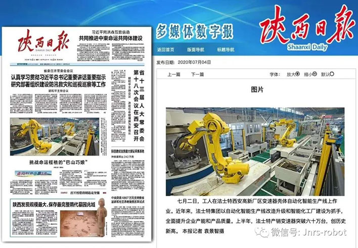 陜西日?qǐng)?bào)7月4日?qǐng)?bào)紙中,巨能機(jī)器人的自動(dòng)化產(chǎn)品線(xiàn)精彩亮相。巨能機(jī)器人研制的變速箱殼體生產(chǎn)線(xiàn),成功交付法士特西安高新廠區(qū),已經(jīng)開(kāi)始正常投產(chǎn)運(yùn)行。在建設(shè)自動(dòng)化智能化生產(chǎn)線(xiàn)方面,巨能機(jī)器人和法士特客戶(hù)還成功實(shí)施了緩速器定轉(zhuǎn)子生產(chǎn)線(xiàn)等系列項(xiàng)目,合作共贏,實(shí)現(xiàn)了公司在變速箱領(lǐng)域的典型應(yīng)用示范工程!
