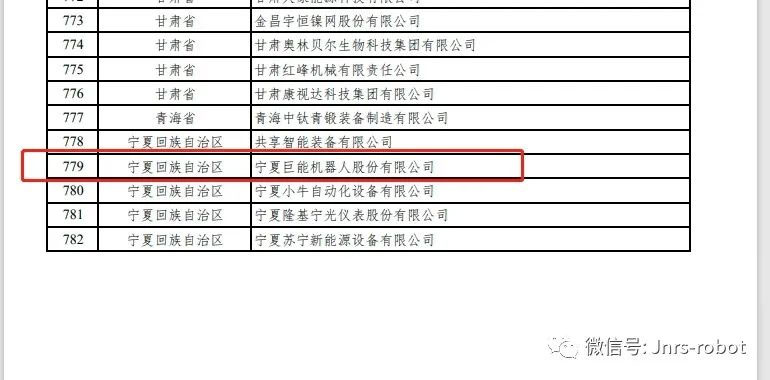 近日,工信部公示了建議支持的國(guó)家級(jí)專精特新“小巨人”企業(yè)和國(guó)家中小企業(yè)公共服務(wù)示范平臺(tái)名單(第一批第一年)。寧夏巨能機(jī)器人股份有限公司入選建議支持的國(guó)家級(jí)專精特新“小巨人”企業(yè)名單。