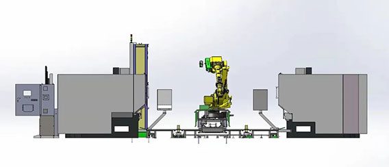 新的五軸柔性產(chǎn)線由原先的6臺加工中心擴(kuò)展到10臺加工中心,對原有六軸機(jī)器人軌道進(jìn)行延長,仍在人員配置最少的情況下實(shí)現(xiàn)了整條全新線路的維護(hù)與運(yùn)行工作,完成了中夜班無人值守的生產(chǎn)目標(biāo)。