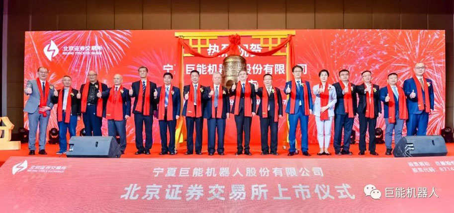2023年5月12日上午,隨著“巨能股份871478”開市寶鐘的響起,在政府領(lǐng)導(dǎo)、合作伙伴、中介機構(gòu)、新聞媒體等社會各界的共同見證下,寧夏巨能機器人股份有限公司正式登陸北交所發(fā)行上市,成為全面注冊制改革后寧夏較早上市企業(yè),北交所迎來寧夏籍的專精特新“小巨人”企業(yè)。
