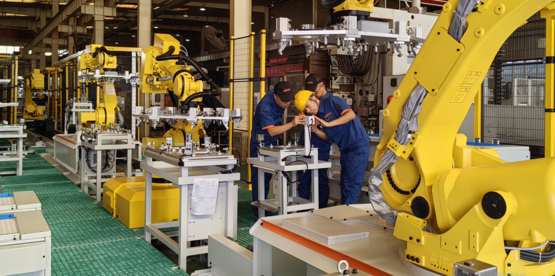巨能機器人寧夏總部裝配技師正在調(diào)試關(guān)節(jié)機器人生產(chǎn)線