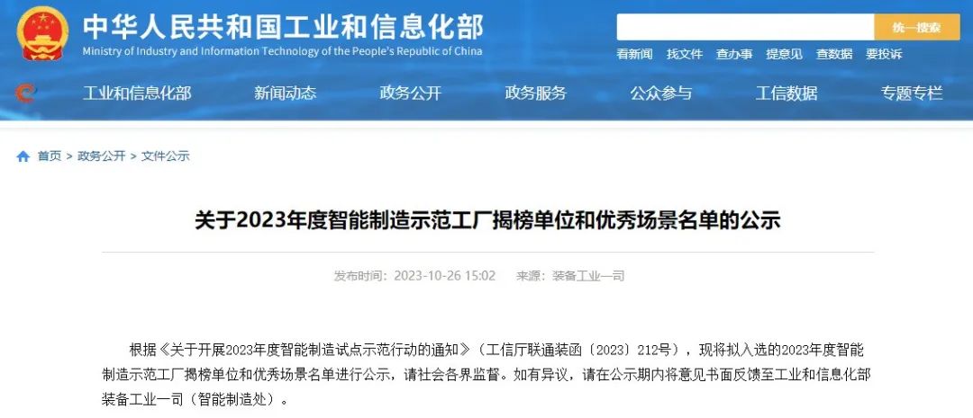 “ 國家級(jí)智能制造示范工廠”,是今年8月由工業(yè)和信息化部、國家發(fā)展改革委、財(cái)政部、國務(wù)院國資委、市場(chǎng)監(jiān)管總局五部門聯(lián)合開展并發(fā)布的《關(guān)于開展2023年度智能制造試點(diǎn)示范行動(dòng)的通知》中而設(shè)立的授牌活動(dòng),旨在遴選一批智能制造優(yōu)秀場(chǎng)景,以揭榜掛帥方式建設(shè)一批智能制造示范工廠和智慧供應(yīng)鏈,在各行業(yè)、各領(lǐng)域選樹一批排頭兵企業(yè),推進(jìn)智能制造高質(zhì)量發(fā)展。