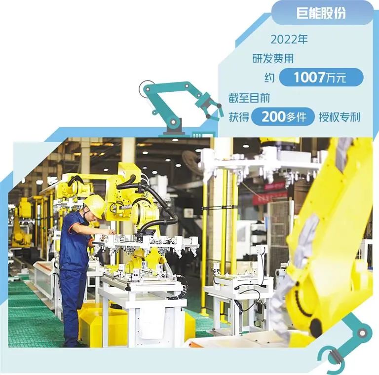 巨能股份是一家以機器人及相關(guān)智能技術(shù)為核心的智能制造整體解決方案供應(yīng)商。近年來,公司持續(xù)加大資金投入力度,研發(fā)、生產(chǎn)和銷售以實現(xiàn)智能工廠為目標的各類工業(yè)機器人、自動化生產(chǎn)線和智能工廠管理軟件,技術(shù)創(chuàng)新水平和產(chǎn)品定制化開發(fā)能力不斷提高,被工信部評為國家級專精特新“小巨人”企業(yè)。截至目前,公司已給360多家用戶交付約1600條自動化生產(chǎn)線。