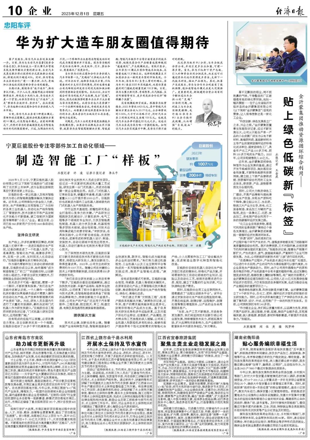 【題記】2023年12月1日,《經(jīng)濟日報》10版刊發(fā)了對巨能股份的專題報道,以下為內(nèi)容全文。