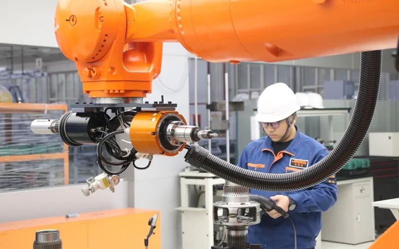 在工廠的實(shí)驗(yàn)室里,一個(gè)近一噸重的橙紅色機(jī)器人,在毫厘之間靈活轉(zhuǎn)動(dòng)著手臂?!斑@個(gè)機(jī)器人有6個(gè)關(guān)節(jié),模擬人類從腰部到手腕的整個(gè)運(yùn)動(dòng)過程,比如對(duì)工件的打磨,熟練工一個(gè)側(cè)面需要3分鐘,機(jī)器人只需要20秒,而且能滿足定制化需求,更提升了精細(xì)度?!本弈芄竟こ處熍砑覞嵳f。