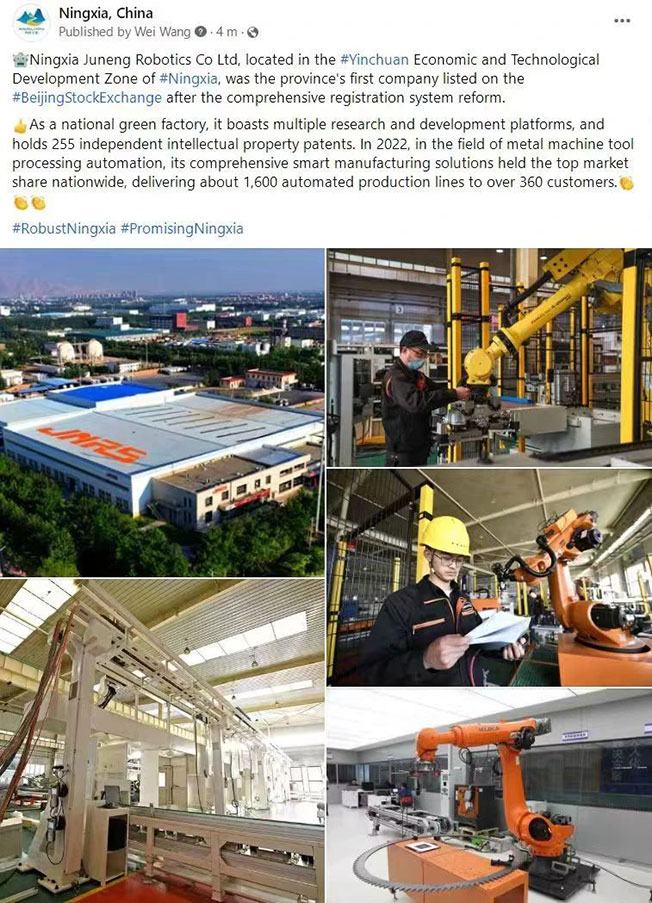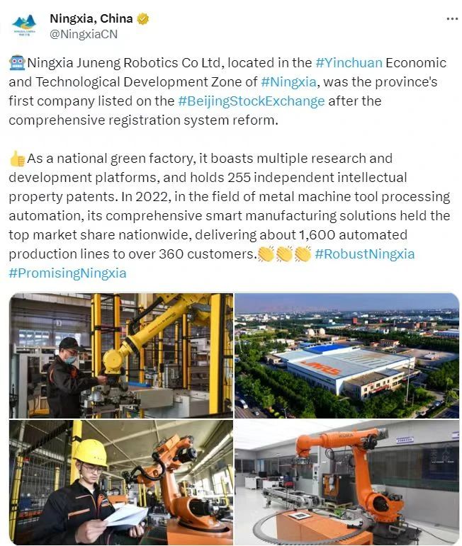 【題記】近日《中國日報》英文版、寧夏臉書、寧夏推特發(fā)布帖文聚焦【巨能股份智能制造綜合解決方案】,以下為報道原文。