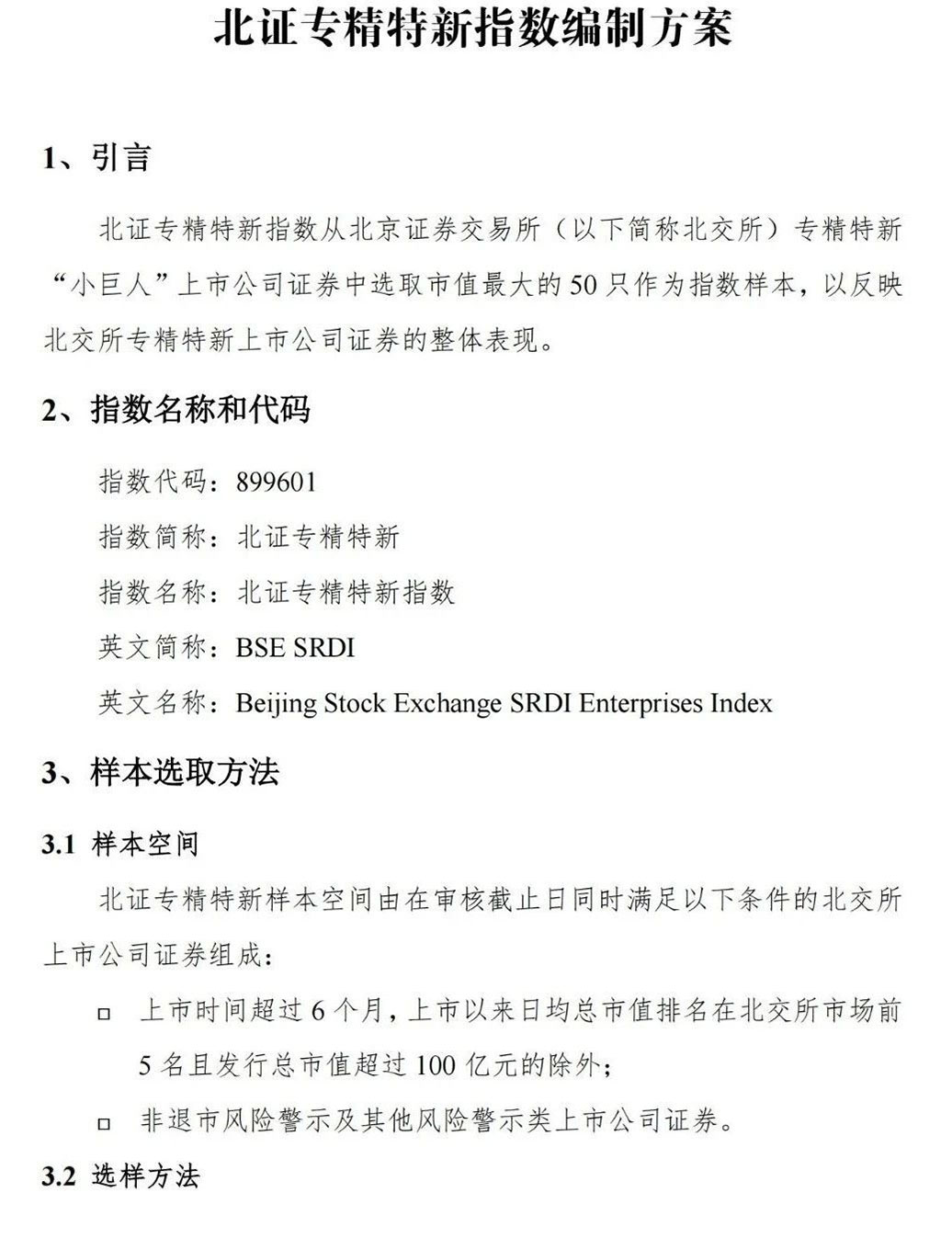 經(jīng)流動性篩選后,北證專精特新指數(shù)從符合條件的北交所專精特新“小巨人”上市公司證券中選取市值最大的50只作為指數(shù)樣本,以反映北交所專精特新上市公司證券的整體表現(xiàn)。